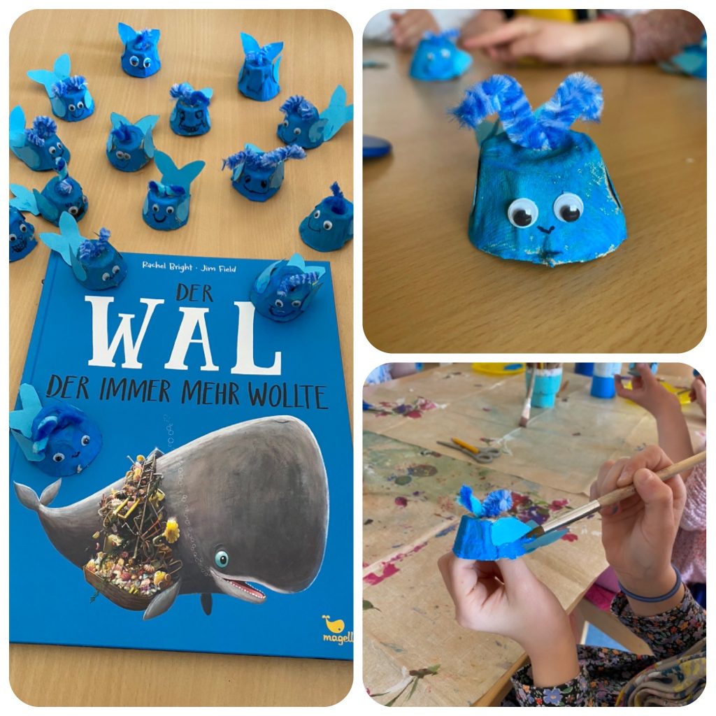 Die restliche Woche haben wir euch weitere Bücher vorgestellt und gelesen, aufmerksam und gespannt habt ihr zugehört und passend zu der Geschichte gebastelt. Am Mittwoch waren es „Die Streithörnchen“ und den letzten Ferientag haben wir mit dem „Wal der immer mehr wollte“ abgeschlossen.