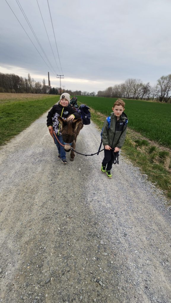 habt ihr Lust auf ein kleines Abenteuer? Dann können wir, die Hortkinder aus dem Hort „Am Regenstein“, euch die Eselwanderung nach Derenburg empfehlen.