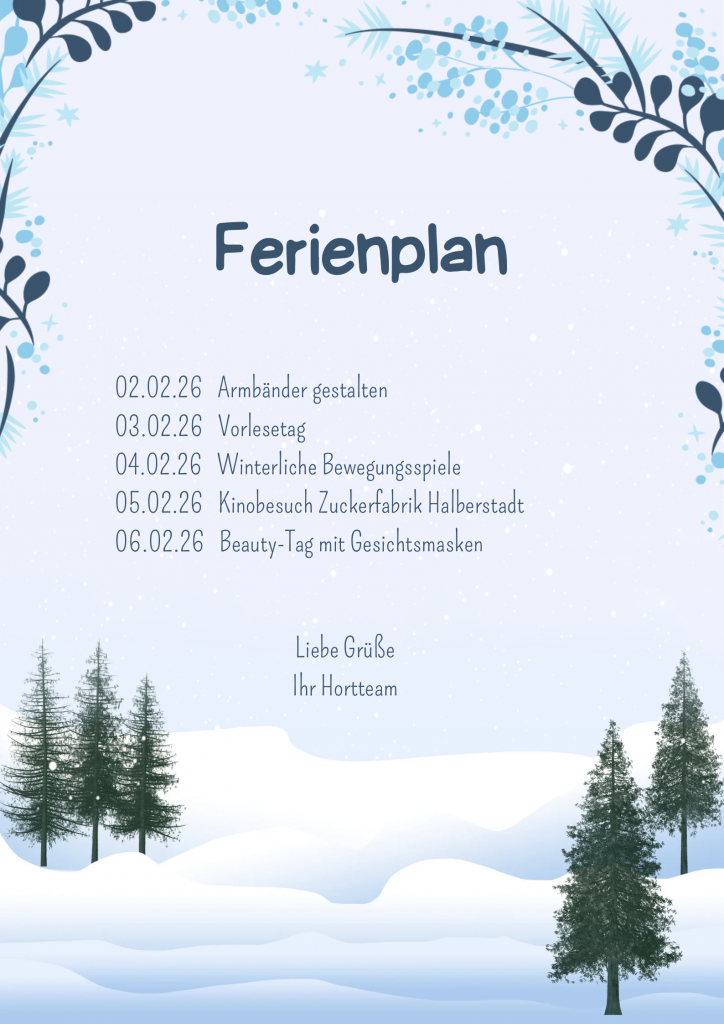 da es am Ende dieser Woche die Halbjahres-Zeugnisse gibt, stehen nun auch die Winterferien an. Für diese Tage haben wir uns schöne Sachen für euch überlegt: